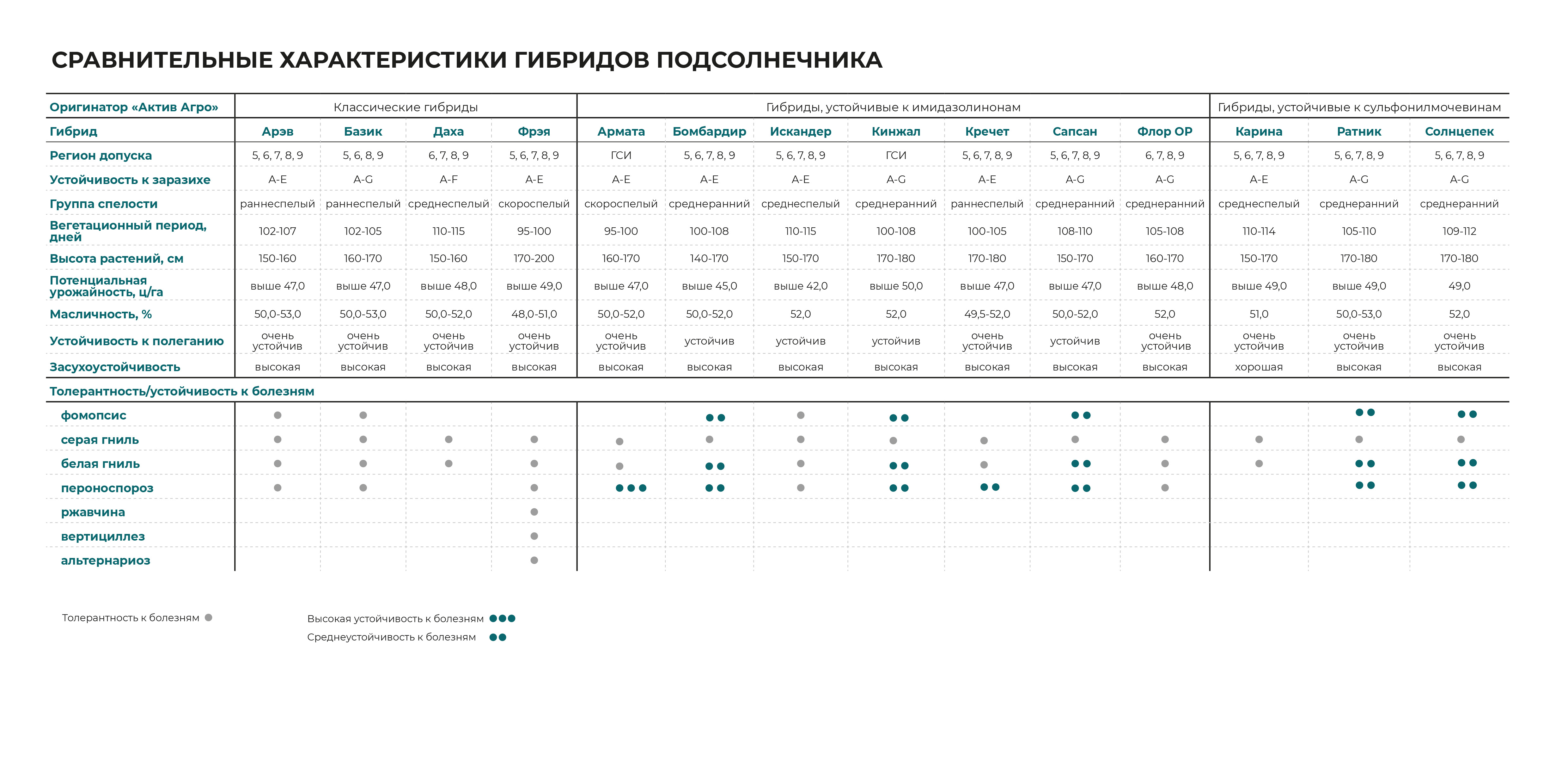Интенсивный среднеранний гибрид с высоким потенциалом продуктивности и отличной устойчивостью к заразихе A-G.