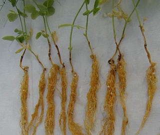 Основной вред возбудитель наносит культуре гороха. Вредоносность выражается в разрушении корневой системы и клубеньков, гибели всходов, отставании растений в росте, карликовости, снижении пищевой ценности и ухудшении посевных качеств семян.