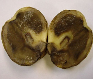 На ростках картофеля до всходов появляются участки побуревшей ткани. Она становится рыхлой, мокрой, иногда на ней можно наблюдать слабое спороношение. Такие ростки легко ломаются в местах поражения или сгнивают полностью. Клубни не дают всходов.