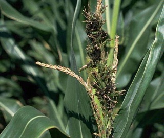 Возбудитель болезни - базидиальный гриб Sorosporium reilianum McApl. f. zeae Geschele из порядка Ustilaginales