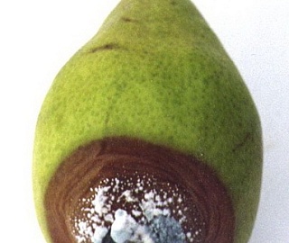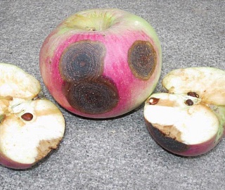 Горькая (глеоспориозная) гниль - одна из самых вредоносных и часто появляющихся грибных болезней хранения. Проявляется в виде одного или нескольких от светло- до темно-бурых округлых гнилостных пятен на кожице плода. Пятна вдавливаются, а в центре пятна появляются подушечки конидиального спороношения гриба. При прогрессировании болезни пятна сливаются, гниль проникает в мякоть плода, которая становится горькой на вкус.