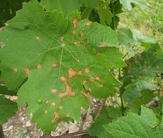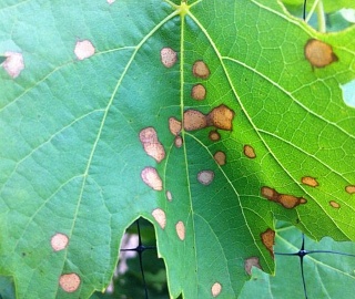 Симптомы на листьях: сухой некроз в виде округлых пятен светло-коричневого цвета с более темным ободком диаметром 2-10 мм. В центре пятен образуются пикниды возбудителя, в виде черных точек.