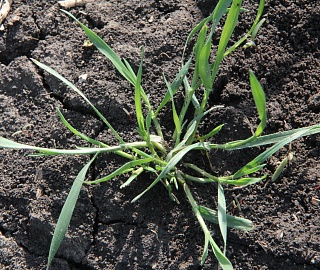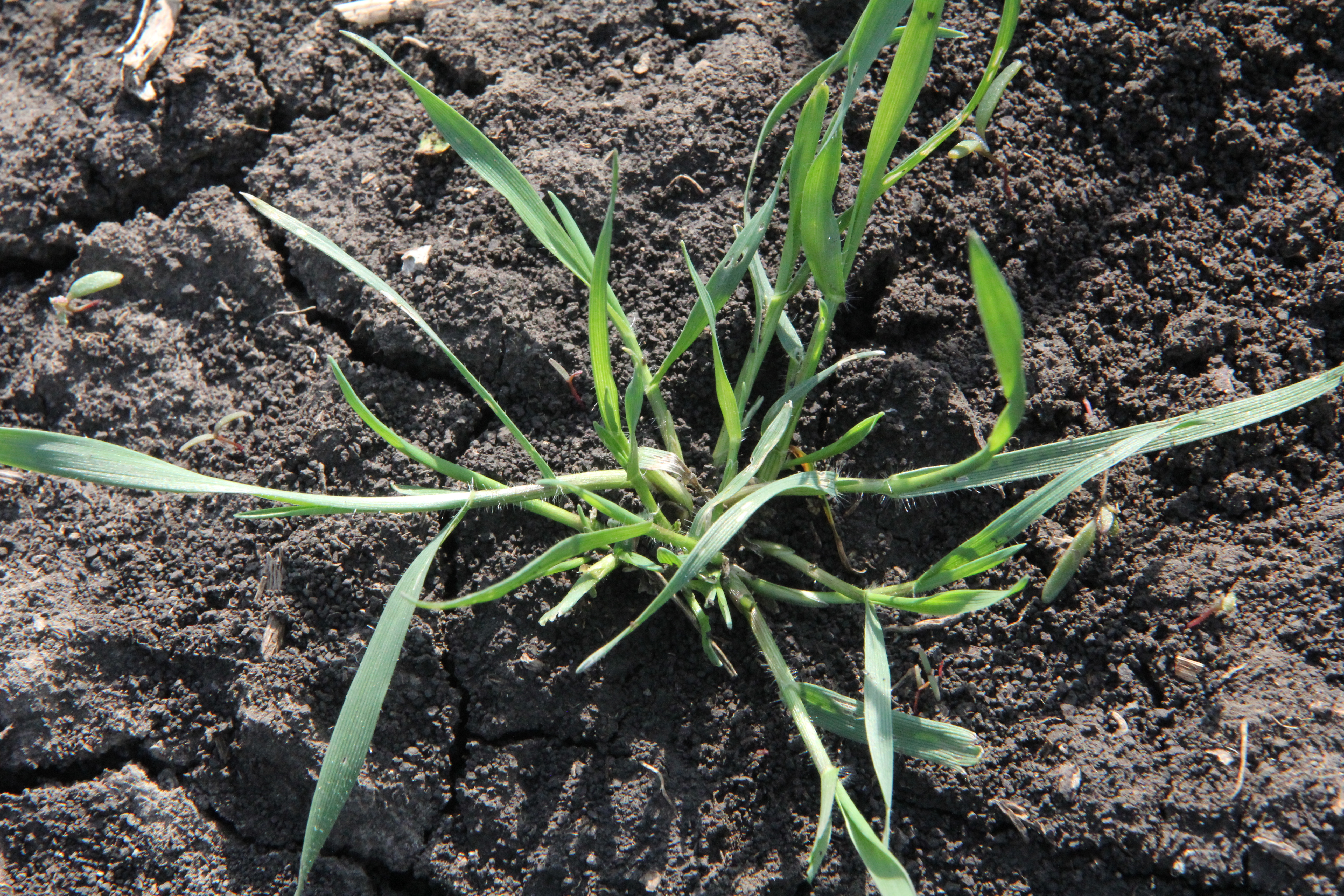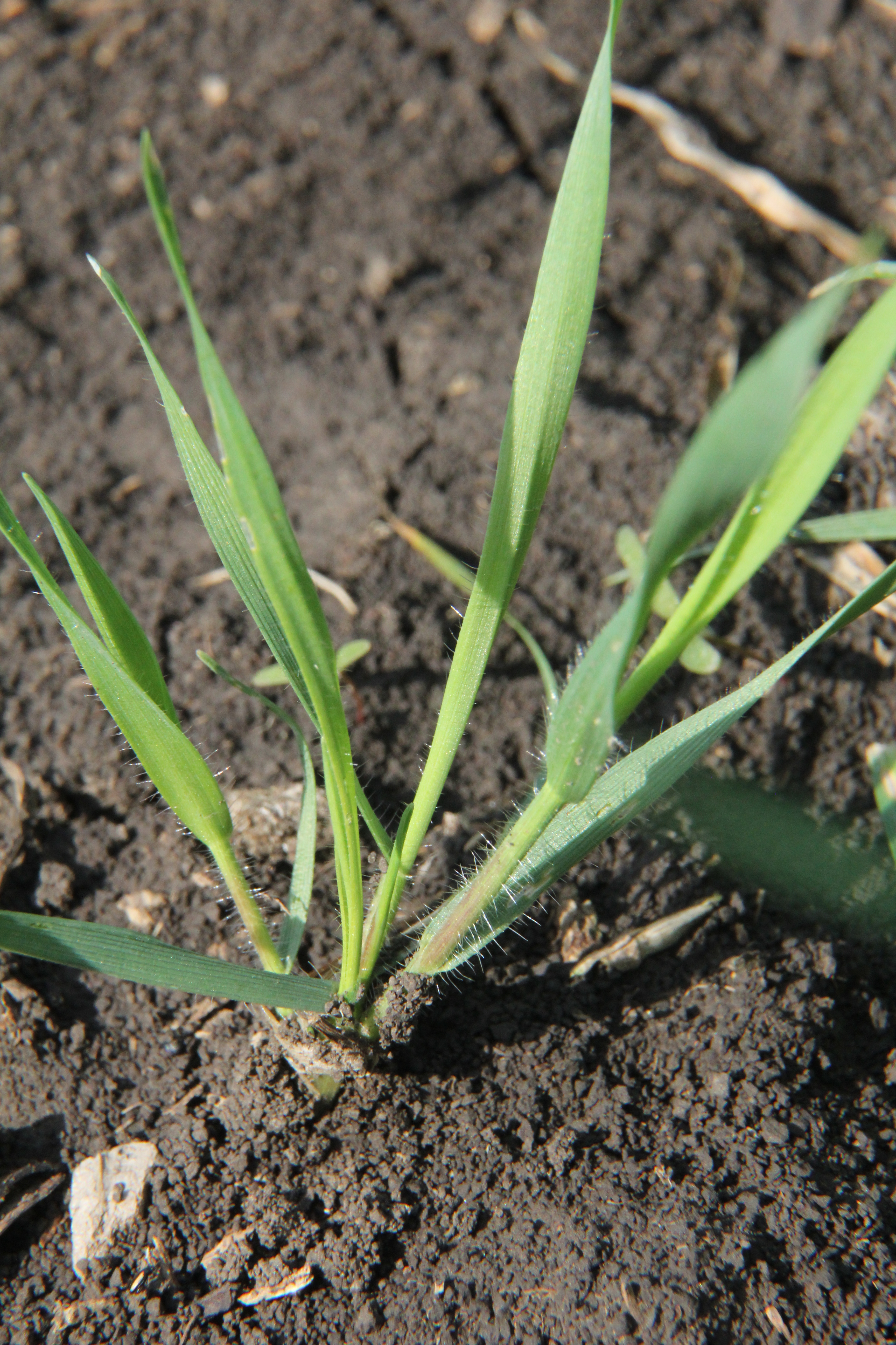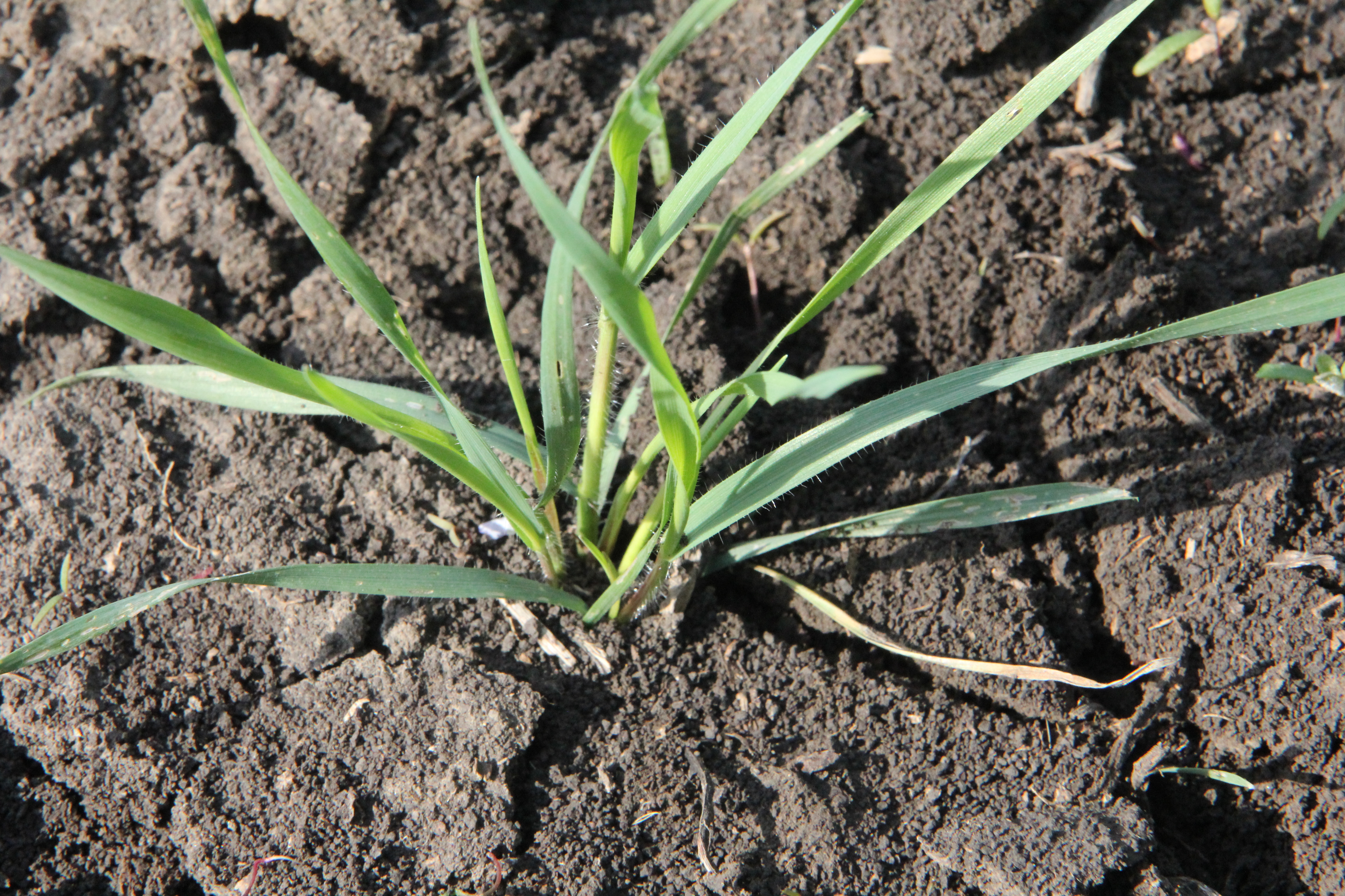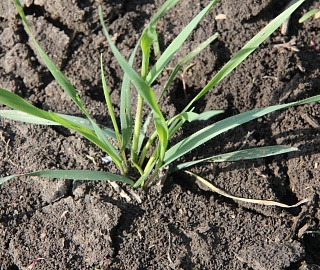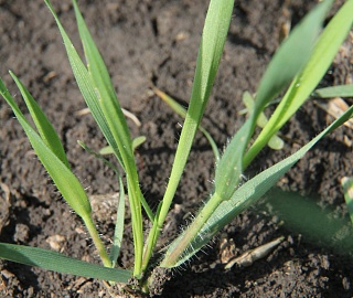 Всходы: темно-зеленой окраски. Первый лист дл.80-100, шир. 2,5-3 мм, в нижней части несет редкие оттопыренные волоски. Влагалища листьев также усажены редкими волосками