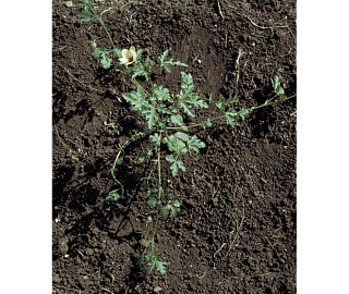 Семядоли: первый лист округлый 7-9 мм, цельнокрайний 12-16 мм, на черешке, второй мелкозубчатый, третий трехраздельный.