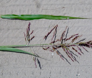Соцветие: крупная метелка. Колоски яйцевидные, опушенные, темно-фиолетовые или темно-коричневые. Нижняя цветковая чешуя с коленчато-изогнутой остью.