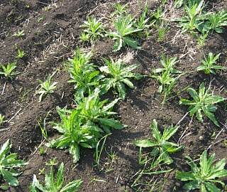 Стебель: 45-70 см высотой, прямостоячий, ветвистый, бороздчатый или ребристый, чаще голый или под корзинками паутинисто-опушенный.