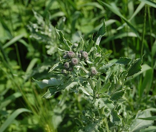 Листья: очередные, довольно жесткие, желто-зеленые, сидячие или короткочерешковые, продолговатые или ланцетные, глубоковыемчатые, перисто-лопастные до перисто-раздельных, волнисто-кудрявые, голые или реже снизу паутинисто опушенные, по краю с крепкими шипами 3-5 (6) мм длиной.