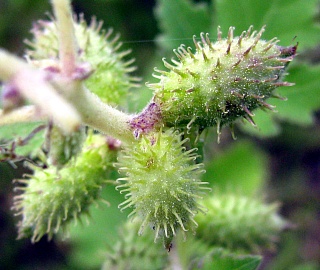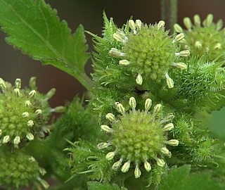 Цветки: мужские соцветия шаровидные, зеленоватые, сидячие на концах ветвей; женские - пазушные, единичные или по несколько штук вместе, после оплодотворения ёжиковидные.