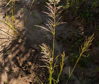Цветок: колоски с одним цветком, заключенные в большую, неплотную, ветвисто расходящуюся после цветения метелку, цветковая чешуя шероховатая, остистая (ости прямые, в 3-4 раза длиннее чешуи).
