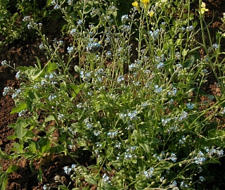 Цветки: голубые (редко белые) собраны в кисть. Цветоножка при плодах вдвое длиннее острозубчатой чашечки. Венчик с короткой трубкой, с отгибом, 2-4 мм в диаметре.