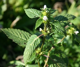 Цветок: выражено двугубый, расположен венцеобразно в пазухе листа, основная окраска пурпуровая, реже белая. Венчик приблизительно 1,5 см длиной, снаружи волосистый, трубка его несколько превышает зубцы чашечки, верхняя губа овальная, средняя лопасть нижней губы четырехугольная или продолговатая, широкая (2-4 мм шириной) и плоская, у зева с ярким желтым пятном и рисунком в виде мелкопетлистой пурпурово-коричневой сеточки.