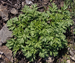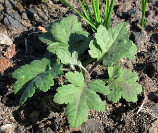 Листья: перисторассеченные, лицевая сторона голая, изнаночная - серовойлочная, нижние черешковые, верхние сидячие, слаборассеченные.