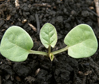 Семядоли: расширенно лопатчатые, крепкие, цельнокрайние, с проступающими средним ребром и прожилками.
