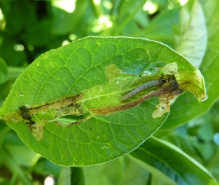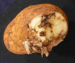 Характер повреждения. Признаки повреждения картофеля молью проявляются в виде минирования листьев и стеблей, а также протачивания узких ходов под кожурой или внутри клубней (1 гусеница делает 3-4 хода). В клубни гусеницы чаще проникают через глазки. Характерным признаком повреждения является наличие экскрементов на поверхности и в ходах клубней, а также в минах листьев и стеблей. Стебли выше места повреждения отмирают, листья оплетены паутиной, на клубнях в местах проникновения гусениц появляется фиолетовая окраска. Кроме того, поврежденный гусеницами картофель легко заражается грибными и бактериальными гнилями.