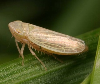 отряд Равнокрылые/ Homoptera, подотряд Цикадовые, семейство Цикадки CicadellidaeБледно-желтая или бледно-зеленая цикадка с сероватым нерезким рисунком. Развивается 3-4 поколения в год. Зимует имаго. Весной откладывает яйца в листья кукурузы. Олигофаг злаков. Повреждает листья кукурузы с нижней стороны вдоль главных жилок. На месте уколов появляются белые точки. При сильном повреждении листья засыхают.