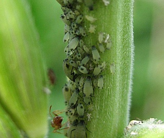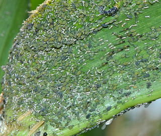 На кукурузе вредят несколько видов тлей, среди них: кукурузная или сорговая тля, волосатая кукурузная тля.