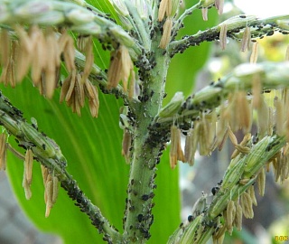 Кукурузная (сорговая) тля (Rhopalosiphum maidis Fitch.), волосатая кукурузная тля (Rungsia maydis Pass.)