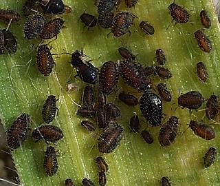 отряд Равнокрылые / Homoptera, семейство Тли / AphididaeВредители злаковых культур. Повреждается пшеница, ячмень, овес, рожь, сорго, кукуруза, просо, сахарный тростник и дикие злаки.