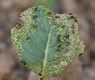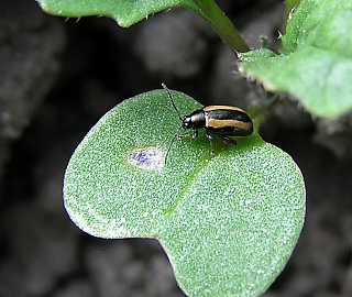 Рано весной, как только оттает почва и появится первая растительность, жуки выходят с мест зимовки и сразу же приступают к питанию: в Северо-Западном регионе – в начале мая, Центральном – в апреле, Центрально-Черноземном – в конце марта, Северо-Кавказском – в начале марта. Если весна поздняя и холодная, выход блошек задерживается. В начале весеннего их появления на полях обычно нет культурных крестоцветных, и жуки нападают на сорняки: пастушью сумку, ярутку, сурепку и другие крестоцветные. Несколько позднее они перекочевывают на дикую редьку, репу, рапс. И уж после этого переходят с «дикарей» на культуры, собираясь при этом в массе на всходах. Именно в этот период жуки больше всего и вредят.