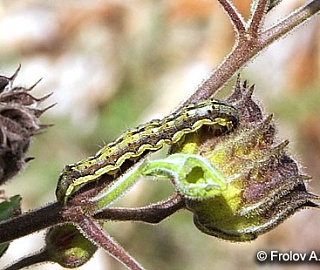 - На подсолнечнике гусеницы хлопковой совки питаются как на листьях, скелетируя их, так и на корзинках.