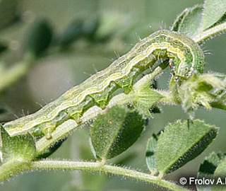 - На сое гусеницы повреждают бутоны, завязи, листья.