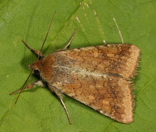Передние крылья у самок оранжево-коричневые, у самцов зеленовато-серые. Круглое и почковидное пятна темно-серые, неясные с нечеткими поперечными линиями. Задние крылья светлее с широкой бурой полосой перед наружным краем и темным луновидным пятнышком посередине.