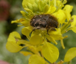 Вредят взрослые жуки- грызут цветы плодовых и ягодных деревьев и кустарников, многих других видов садовых и дикорастущих растений.