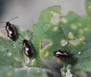 Наиболее сильно вредят волнистая (Ph. undulata Kutsch.), светлоногая (Phyllotreta nemorum L.), выемчатая (Ph. vittata F.), синяя (Ph. nigripes F) и черная (Ph. atra F.) блошки. Распространены повсеместно. Одни из самых опасных вредителей молодых растений.