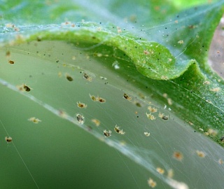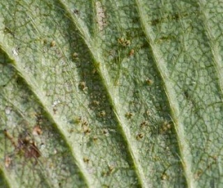 Весной появляется на нижней стороне листьев, покрывает их паутиной и высасывает соки. В результате листья желтеют и отмирают. Клещи быстро размножаются в жаркую погоду.