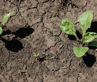 Наиболее опасны для всходов пропашных культур и рассады овощных культур весной и в начале лета. У проросших растений объедают семядоли и молодые листочки около поверхности почвы, подгрызают и перегрызают стебельки молодых растений у основания. Личинки повреждают семена, корни, подземные части стеблей различных культур, но из-за позднего появления обычно не представляют большой опасности.
