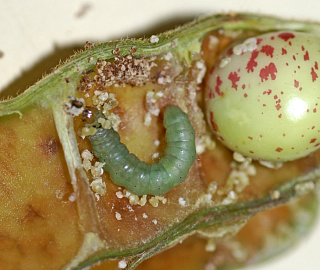 - Применение инсектицидов в сжатые сроки, предшествующие массовому внедрению гусениц внутрь бобов