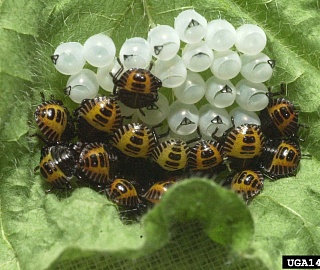 Яйцо. Весной самка откладывает белые шаровидные яйца, прикрепляя их к нижней стороне листа кучками по 20-30 штук. Отрождаясь из яиц, нимфы остаются в кладке на протяжении нескольких дней.