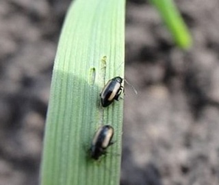 - Опасны повреждения полосатой блошки на этапе появления всходов. В холодную погоду, когда появление всходов задерживается, блошки наносят сильное повреждение листьям и росткам в почве. Скелетирование листьев молодых всходов резко угнетает растение и задерживает его развитие