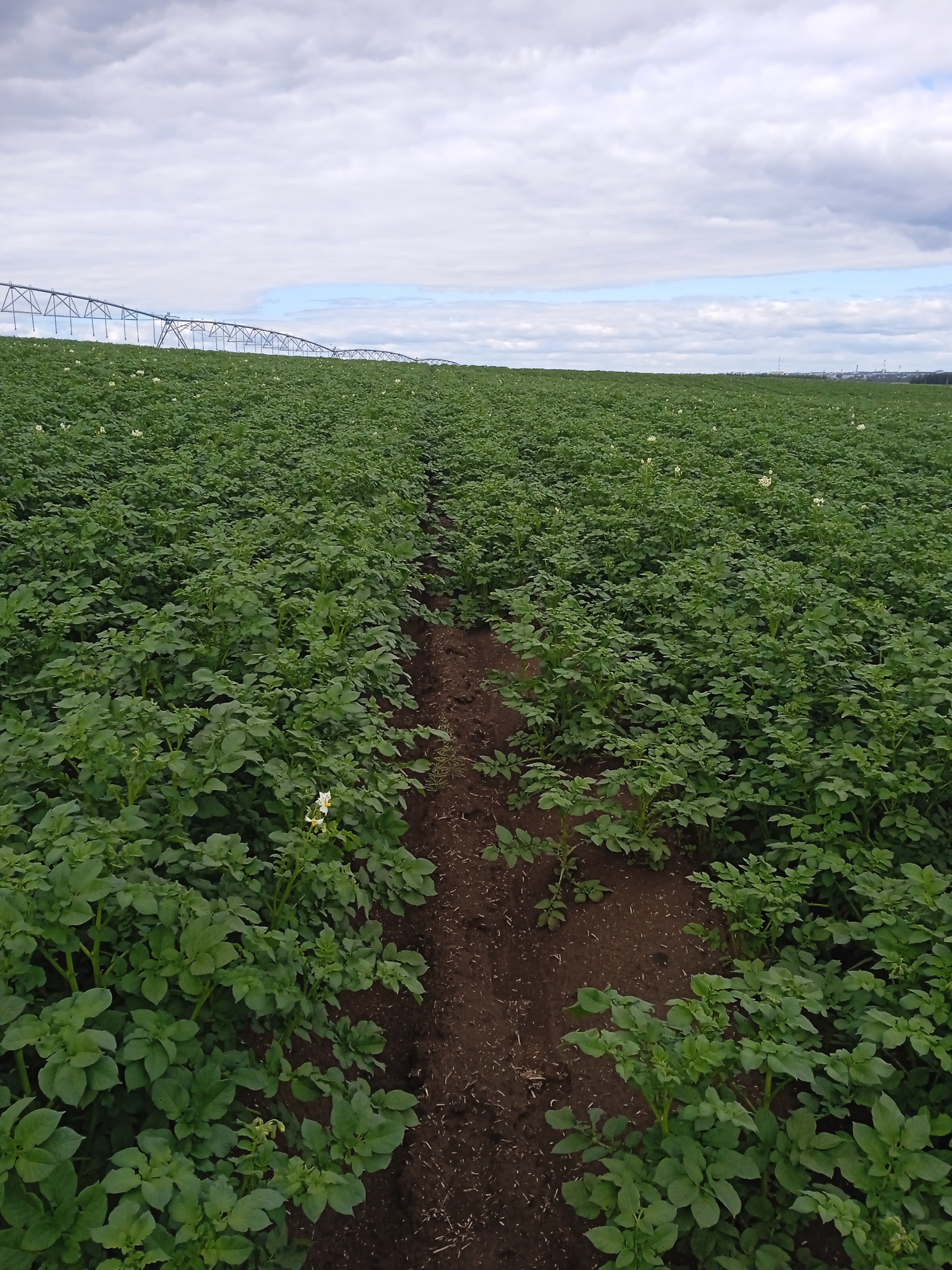 На следующий день, согласно схеме опыта, была проведена четвёртая обработка с применением фунгицида на основе бензойной кислоты совместно с комплексом микроудобрений (УЛЬТРАМАГ КОМБИ для картофеля 1 л/га и УЛЬТРАМАГ КАЛЬЦИЙ 2 л/га) для обеспечения сбалансированного некорневого питания, повышения иммунитета картофеля к болезням, а в дальнейшем – уплотнения кожуры, что позволит максимально уберечь от травм молодой картофель при уборке и приведёт к лучшему хранению урожая на складах.
