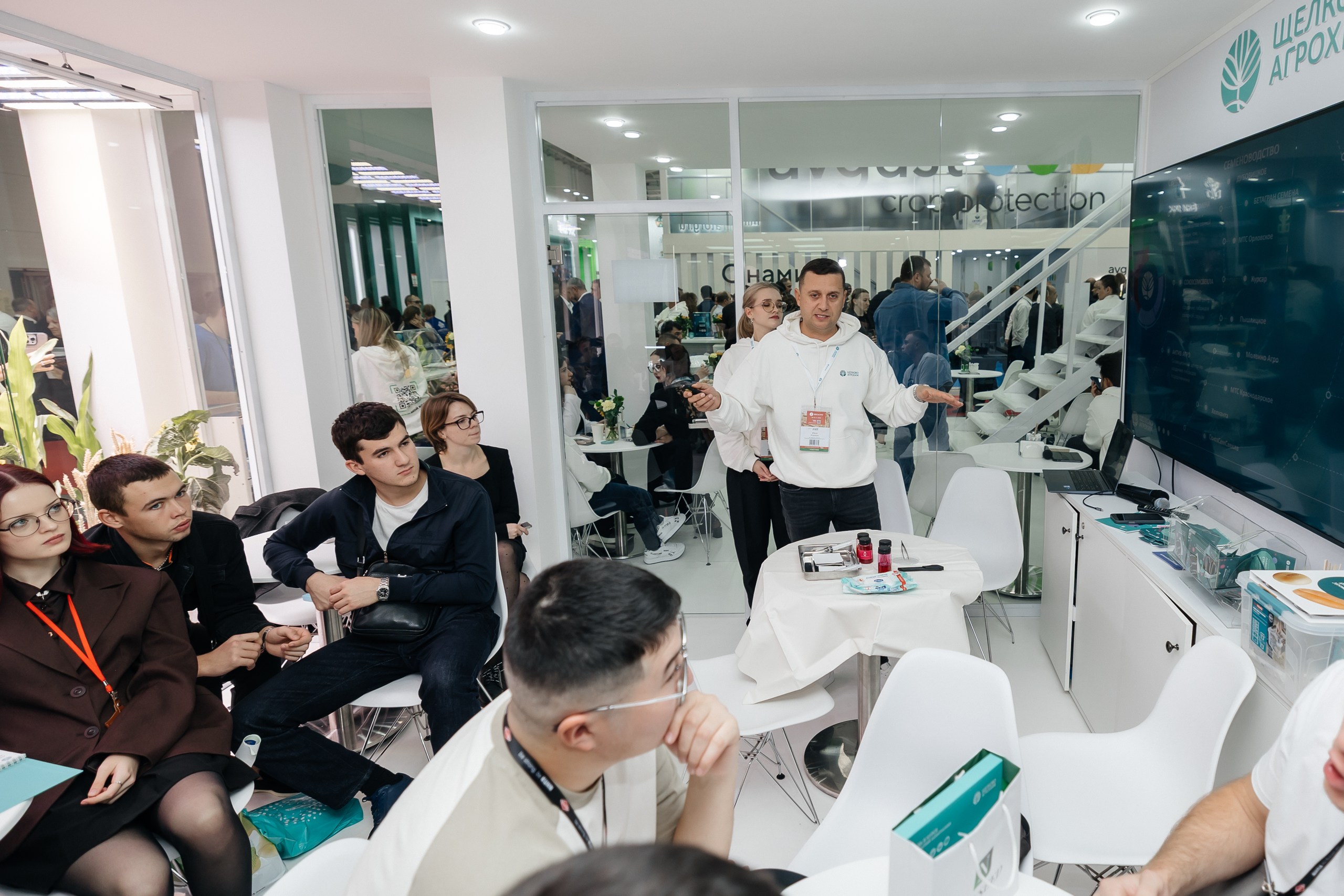 Пока эксперты обсуждали способы привлечения молодых людей в отрасль, на стенде «Щёлково Агрохим» шла серия увлекательных квестов «Успешными специалистами становятся вместе со «Щёлково Агрохим». Здесь студенты аграрных вузов больше узнали о проекте «Бетарен Академия», отвечали на профессиональные вопросы и выигрывали призы.