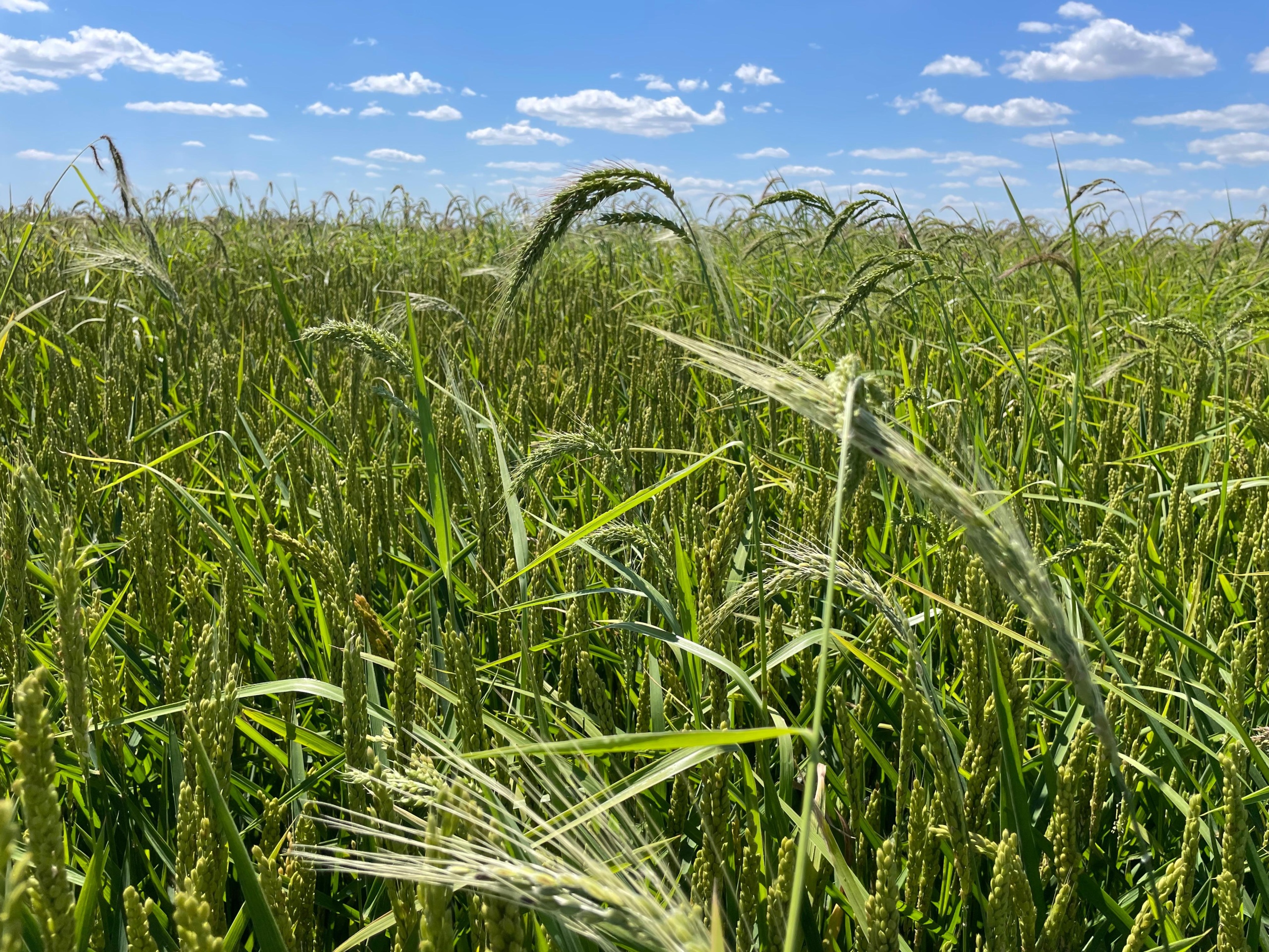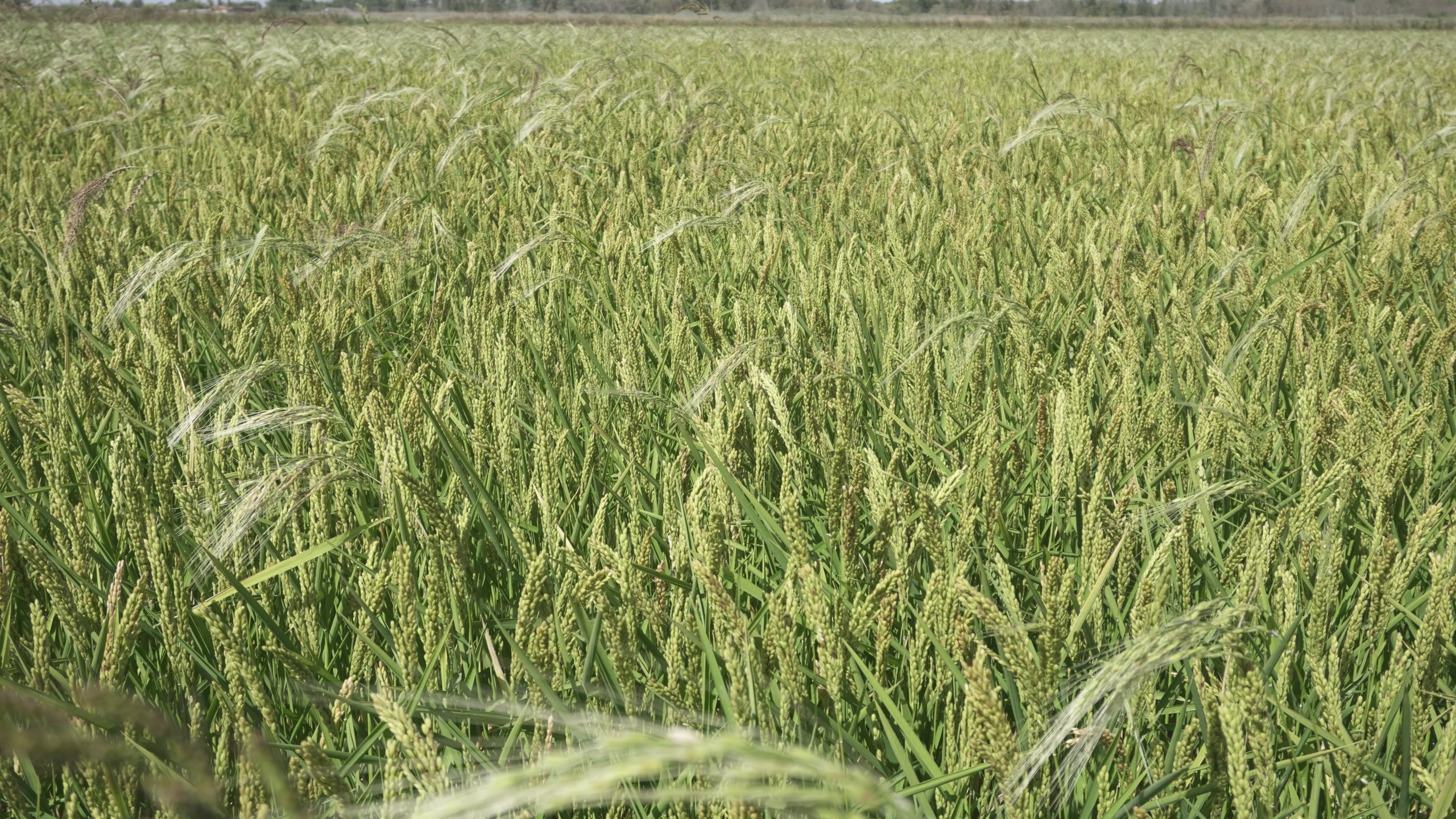 В хозяйстве ООО «Калининское» проводили сравнительные испытания трёх гербицидов методом авиаобработки. Засорённость просовидными была до 50 экз./м2. Рис находился в фазе 2–3 листа, просо – 3–4 листа. Через 7–8 дней гербицидная активность проявилась на всех трёх вариантах: просо крупноплодное пожелтело, наблюдались деформация и усыхание кончиков листьев, отмирание корней. Переросшие экземпляры проса остановились в росте. Также отмечались небольшие признаки фитотоксичности на рисе – появился лимонный оттенок листьев. На варианте РИЗОТТО, МД эти признаки прошли спустя 5 дней после обработки, а на втором опытном варианте, где применяли комбинированный гербицид, через неделю изменение цвета листьев только усилилось, и участок выглядел более бледным. Через 17 дней было отмечено, что на хозварианте (с бенсульфуроном) переросшие на момент обработки экземпляры проса крупноплодного отошли от гербицида и продолжили вегетацию. По итогу, на этом варианте проса крупноплодного было больше, чем на двух других. По-видимому, проявилась резистентность сорняка к данному гербициду, применяемому много лет, считает Ирина Буря. Но ещё больше посев засоряли дикие формы риса, которые не поддаются гербицидным прополкам (фото 3). Раздельную уборку по вариантам провести было невозможно, урожайность на поле составила 69 ц/га.