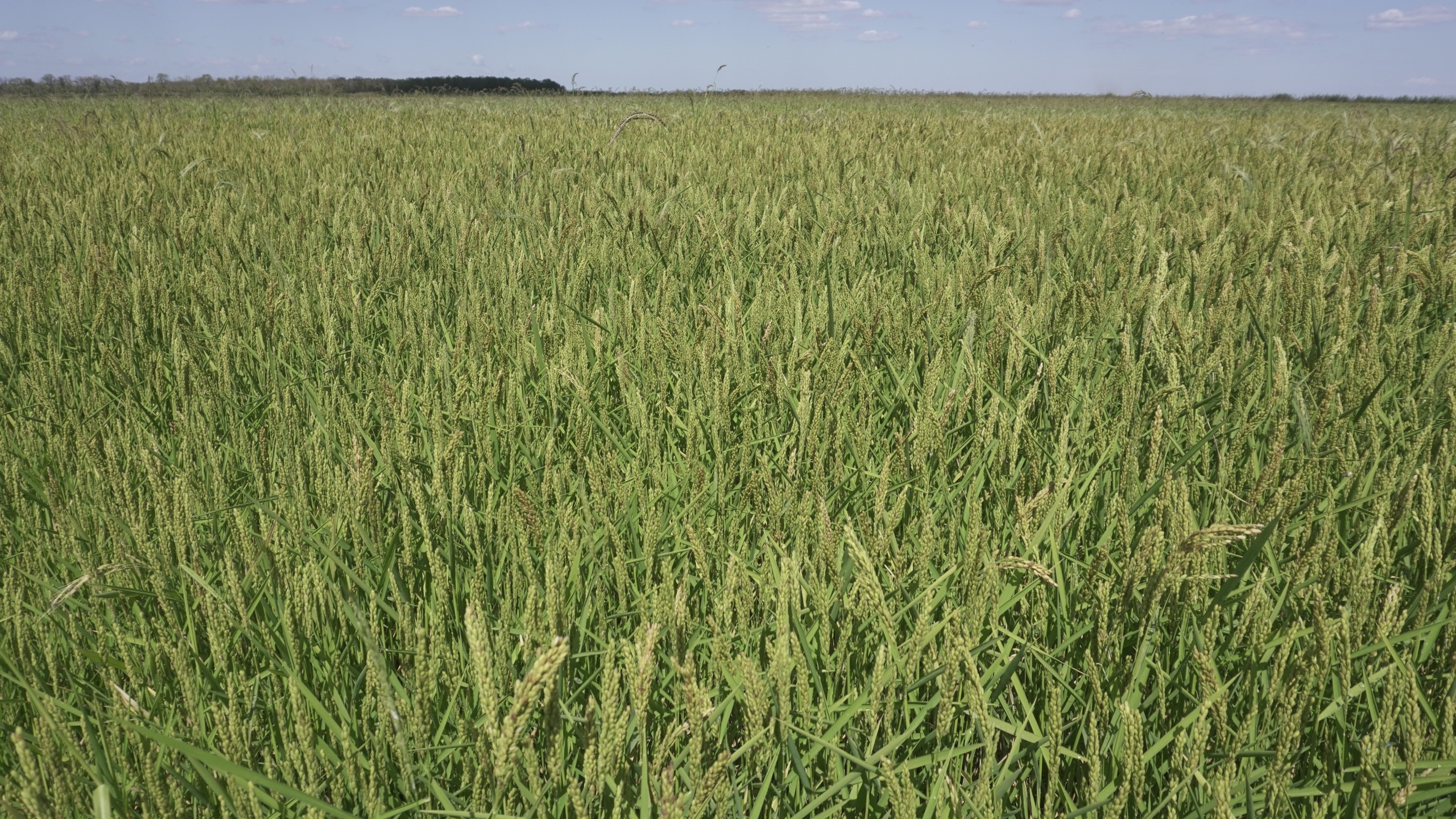 Вариант наземной обработки был испытан в одном из хозяйств АО фирма «Агрокомплекс». На момент обработки засорённость злаками была впечатляющей – 2700 шт./м2, причём просовидные сорняки значительно обгоняли рис в развитии и находились уже в фазе кущения. Гербициды всё же помогли преодолеть столь высокую засорённость – через 18 дней эффективность обоих вариантов составила 89%. Выжившие растения крупноплодного проса продолжили вегетацию и к концу сезона придавали посеву довольно лохматый вид. Урожайность по вариантам составила 69–70 ц/га.