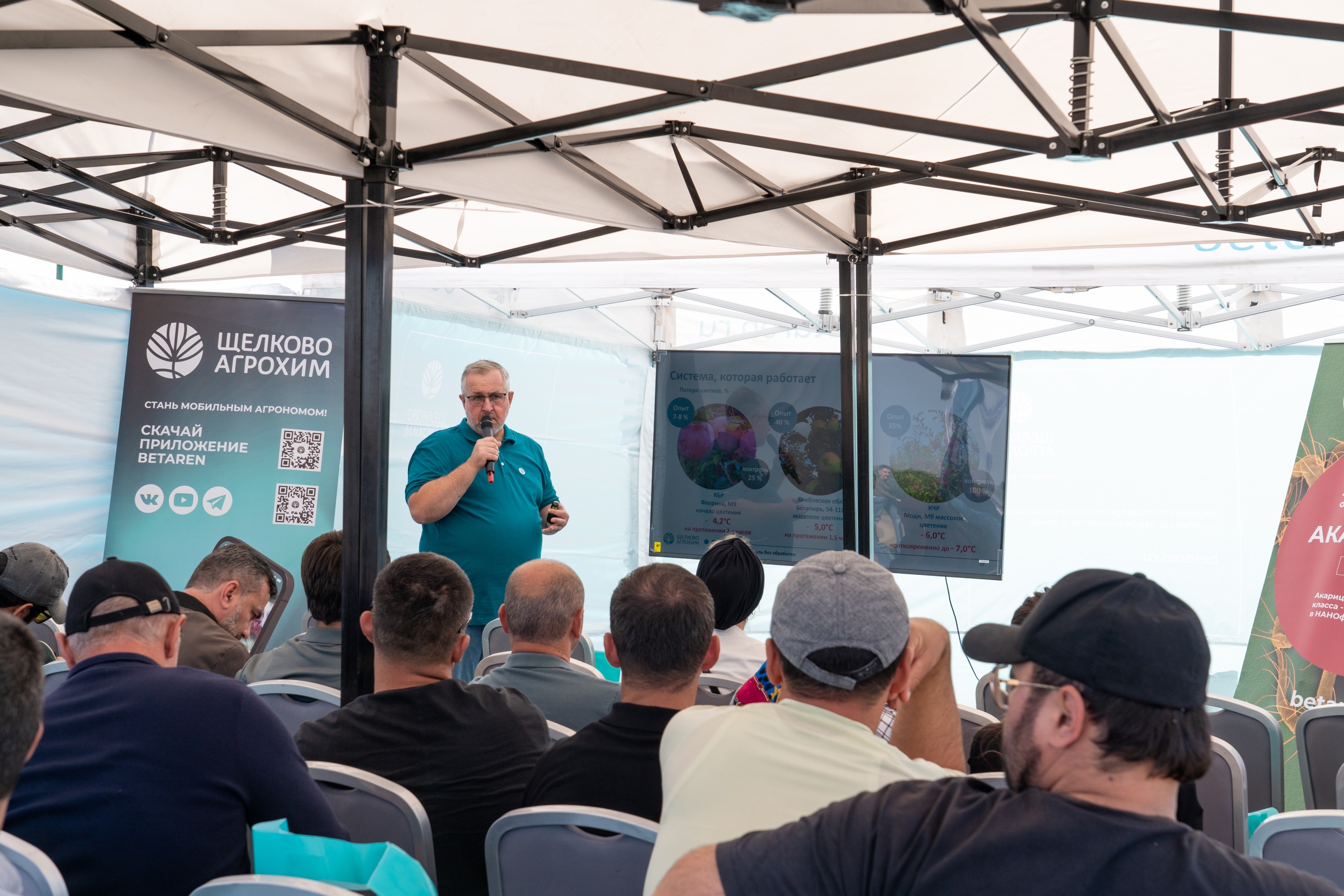 После осмотра опытных полей, гости Территории рекордов переместились в шатровую зону. О важнейшей роли семян в получении высоких урожаев им рассказал Салис Каракотов, а десять аграрных трендов будущего обозначил Николай Лычев – сооснователь и управляющий партнёр «Агротренд». О современных сеялках Mascar, представленных на Территории рекордов, рассказал Олег Гладких – генеральный директор ООО «Дон Юг Агро».