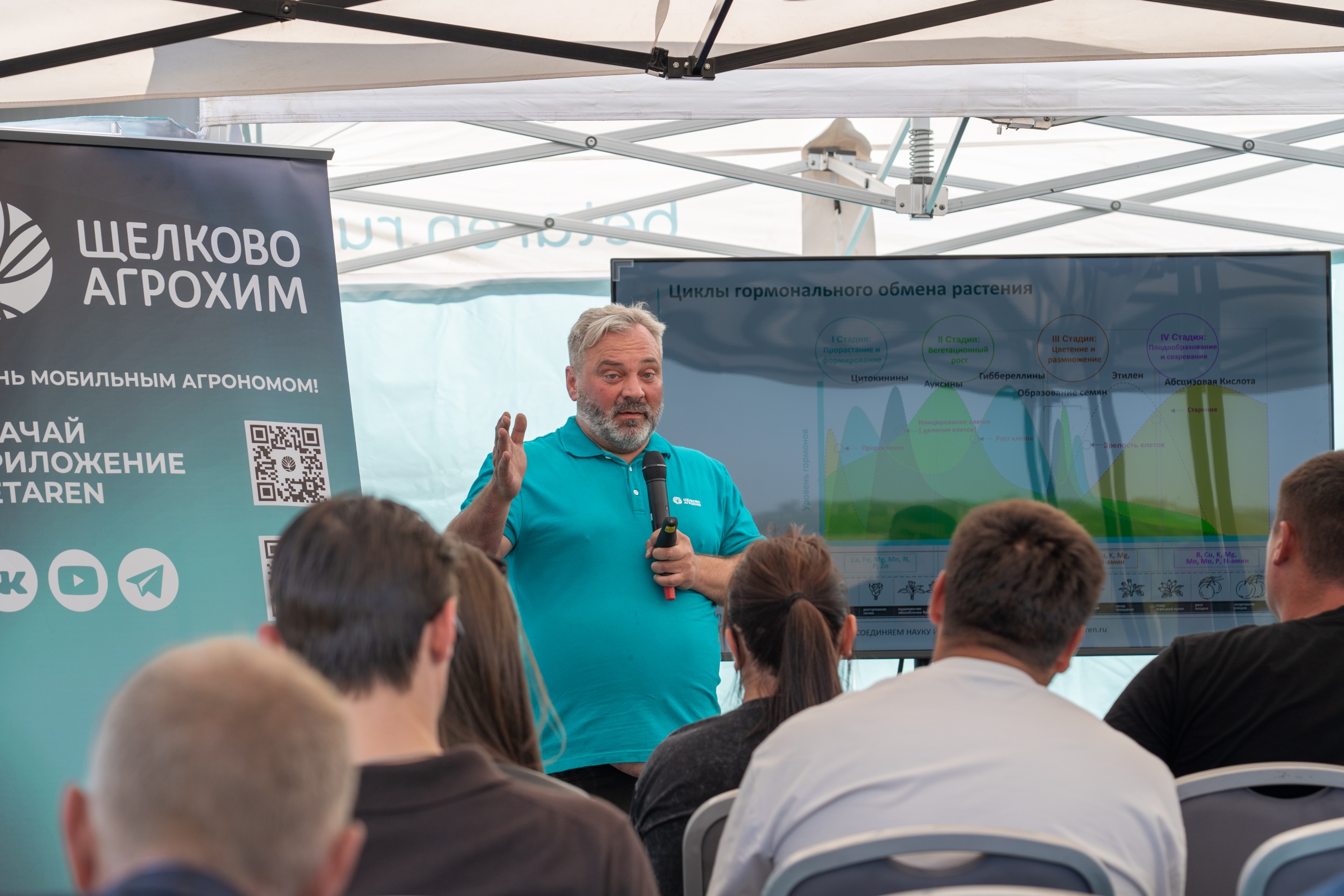 Общение продолжилось в кулуарах: специалисты компании отвечали на вопросы, касающиеся защиты многолетних насаждений от возвратных заморозков, особенностей листового питания яблони, применения регулятора роста САЛЬДО, ВР для прореживания завязей, а также других препаратов «Щёлково Агрохим».