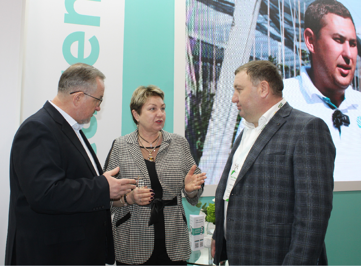 Галина Быстрая, к. с.-х. н., заведующая отделом защиты растений от болезней и вредителей ФГБНУ «Северо-Кавказский НИИ горного и предгорного садоводства» с врио директора ФГБНУ «Северо-Кавказский НИИ горного и предгорного садоводства» Хасаном Хагажеевым (справа) и руководителем направления многолетних насаждений «Щёлково Агрохим» Дмитрием Верещагиным