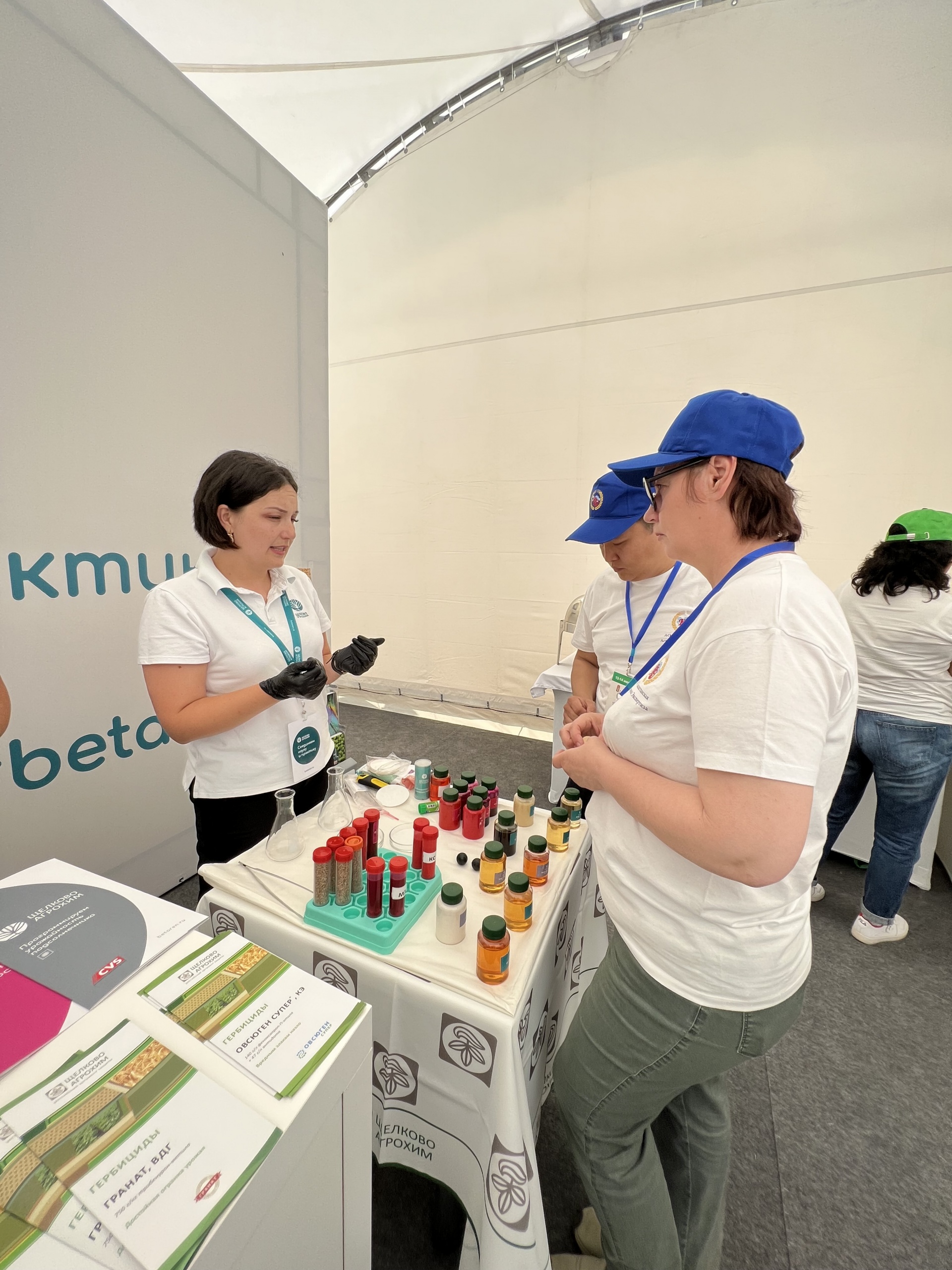 Работа пестицидов «Щёлково Агрохим» была продемонстрирована путём наглядных опытов. На горохе с помощью фунгицидного протравителя СКАРЛЕТ, МЭ было показано проникновение препарата в семя, также проведёны опыты на осыпаемость на пшенице и на разницу действия капель препарата компании в сравнении с другими СЗР.