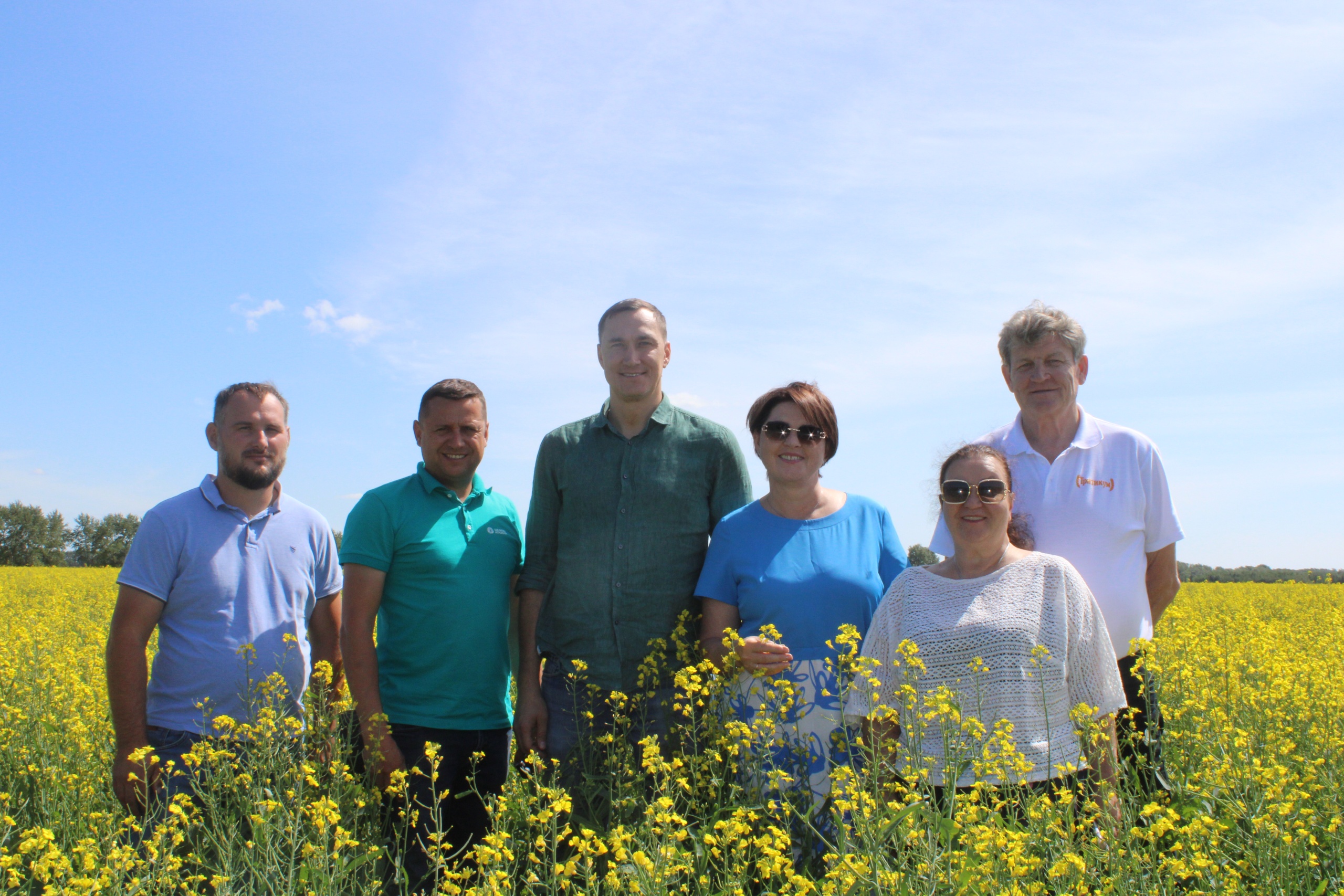 На фото команда «Щёлково Агрохим» в гостях у Александра и Максима Левшуновых. Поле ярового рапса, сорт Форпост КЛ